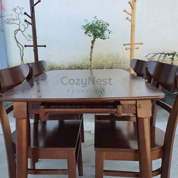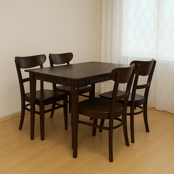 Bàn ăn 4 ghế Panda màu óc chó mang đến vẻ sang trọng và ấm áp cho không gian phòng bếp. Thiết kế nhỏ gọn, tinh tế, phù hợp với nhiều loại hình nhà ở từ căn hộ chung cư đến nhà phố. Đây là lựa chọn lý tưởng cho gia đình muốn sở hữu một bộ bàn ghế ăn vừa tiện dụng vừa bền đẹp.