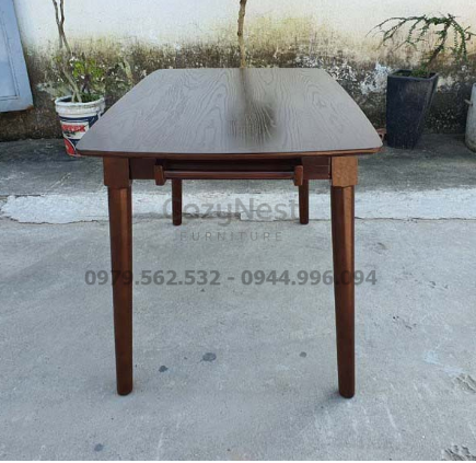• Chân bàn: Gỗ tự nhiên sơn PU màu nâu sậm