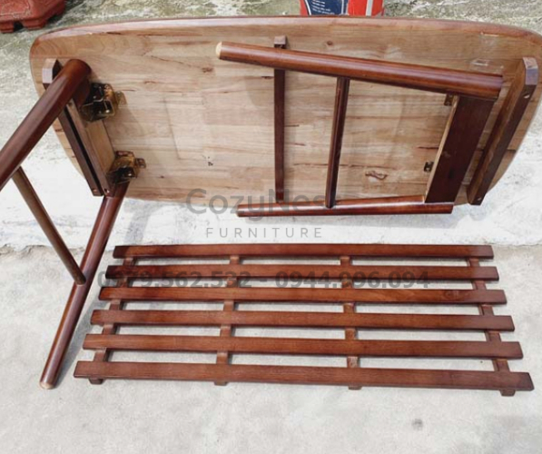 Phần tầng dưới dạng nan gỗ chắc chắn giúp bạn sắp xếp đồ đạc gọn gàng hơn như tạp chí, điều khiển, hộp khăn giấy hoặc vật dụng trang trí. Đặc biệt, bàn có thể gấp gọn linh hoạt khi không dùng đến – một giải pháp tuyệt vời cho không gian nhỏ mà vẫn đảm bảo tính thẩm mỹ.