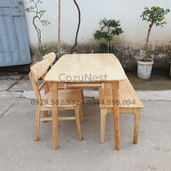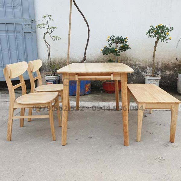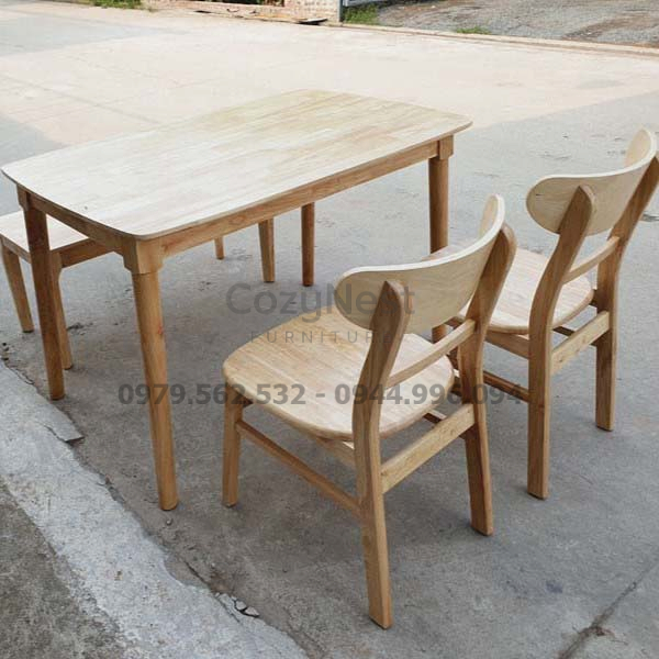 Toàn bộ bàn và ghế đều được chế tác từ gỗ tự nhiên, đảm bảo sự vững chắc và bền đẹp trong quá trình sử dụng. Lớp hoàn thiện tỉ mỉ giúp bề mặt sản phẩm dễ lau chùi, hạn chế bám bẩn, rất phù hợp cho nhịp sống bận rộn của các gia đình hiện đại.