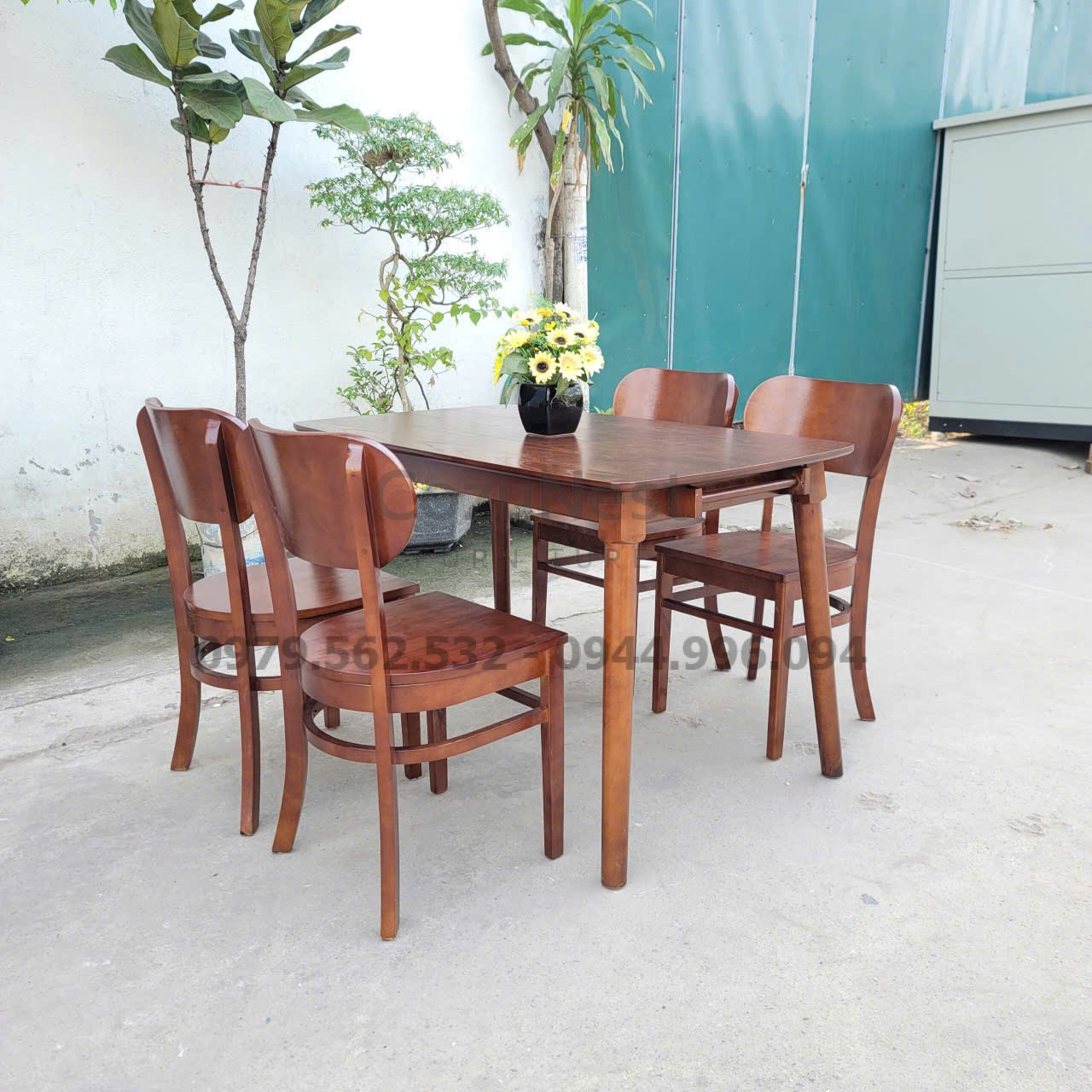 Mặt bàn được làm từ gỗ tự nhiên đã xử lý. Lớp sơn nâu bóng giúp tăng độ sang trọng. Khung ghế có khả năng chịu lực tốt. Gỗ không bị cong khi dùng dài hạn. Toàn bộ sản phẩm được hoàn thiện kỹ để bảo đảm an toàn cho gia đình. Đây là điểm cộng lớn khi bạn chọn mua bàn ghế cho không gian hằng ngày.