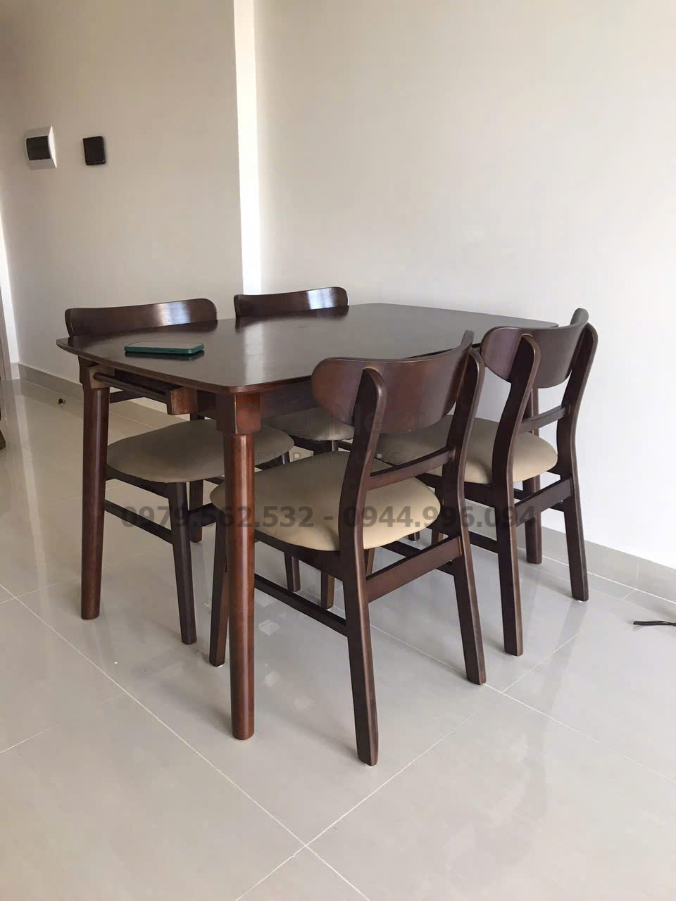 Bộ bàn ghế Mango BBA28 màu nâu đặt trong căn hộ tiện nghi