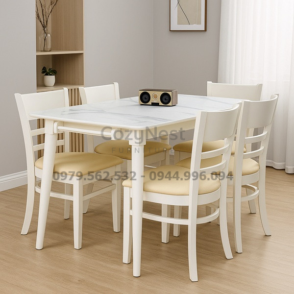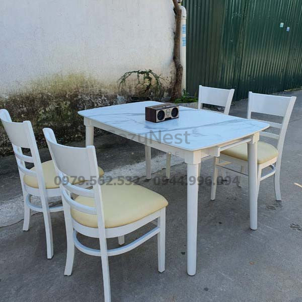 Bộ bàn ăn 4 ghế Monstar giả đá màu trắng – BBA14 là lựa chọn lý tưởng cho những ai yêu thích phong cách hiện đại, sang trọng nhưng vẫn đề cao sự tiện dụng trong sinh hoạt hằng ngày. Điểm nhấn nổi bật của sản phẩm chính là mặt bàn giả đá màu trắng vân mây tinh tế, tạo cảm giác thanh lịch, sáng sủa và dễ dàng kết hợp với nhiều phong cách nội thất khác nhau. Với thiết kế này, không gian phòng ăn sẽ trở nên rộng rãi, thoáng đãng và có điểm nhấn thẩm mỹ rõ rệt.
