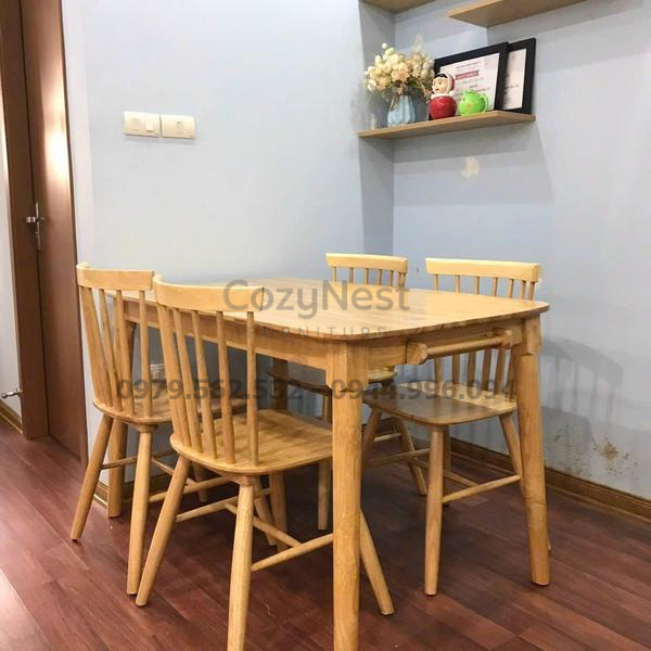 Bộ bàn ăn 4 ghế song tiện BBA03 được làm từ gỗ cao su tự nhiên bền chắc, mang phong cách Bắc Âu tối giản. Sản phẩm gồm 1 bàn chữ nhật và 4 ghế song tiện thanh lịch. Màu gỗ sáng tự nhiên giúp không gian phòng ăn trở nên rộng rãi, thoáng đãng và dễ kết hợp với nhiều kiểu nội thất khác nhau.