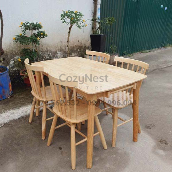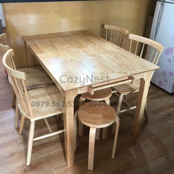 Bàn gỗ cao su tự nhiên chắc chắn, an toàn cho sức khỏe.