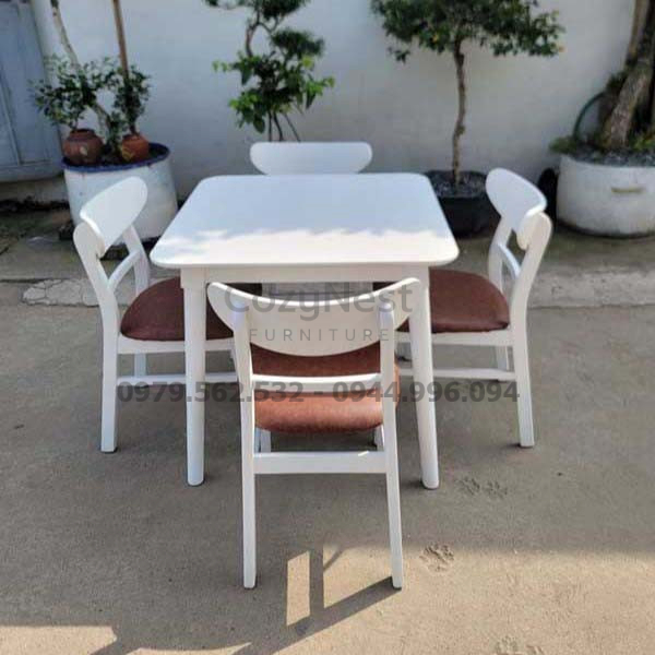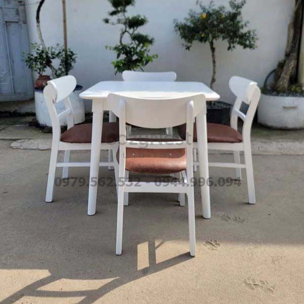 Bộ bàn ăn 4 ghế Mango BBA16 mặt vuông 80cm sơn trắng hiện đại
