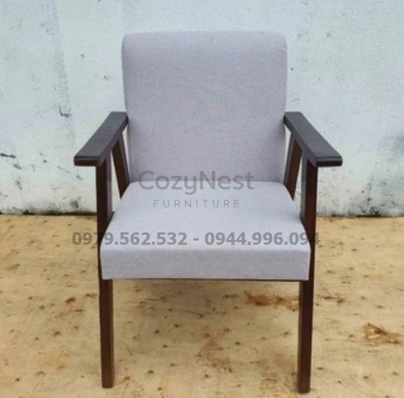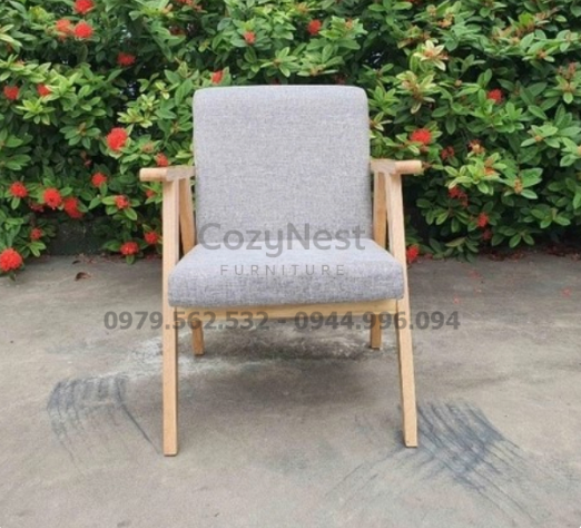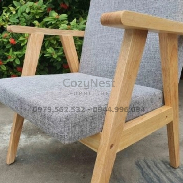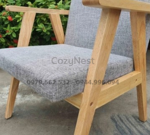 Tay vịn dẹt phẳng, bo góc nhẹ, giúp người dùng dễ dàng tựa tay, đặt sách hoặc ly cà phê. Phần khung gỗ chắc chắn, có khả năng chịu lực tốt, đồng thời mang lại nét thẩm mỹ thanh thoát và bền bỉ theo thời gian.