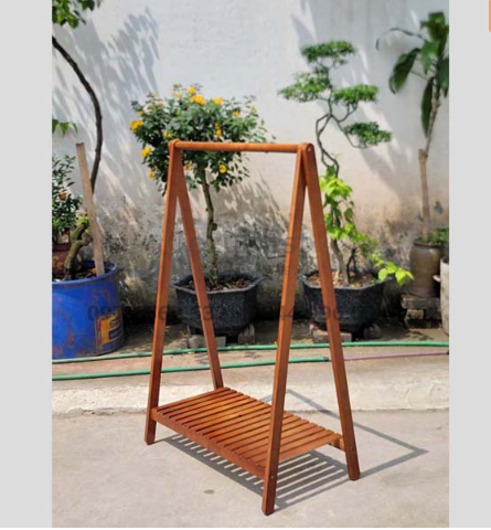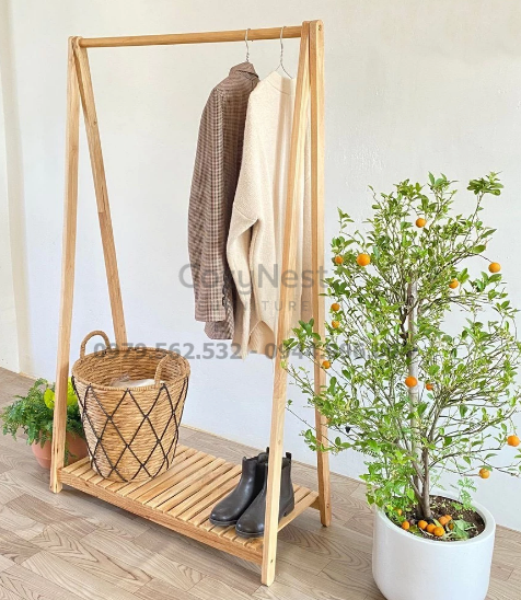 Phần thanh ngang chắc chắn có thể treo từ 10–15 chiếc áo, váy hoặc túi xách. Tầng dưới là nơi lý tưởng để sắp giày dép hoặc hộp đựng đồ. Thiết kế thông thoáng giúp căn phòng luôn gọn gàng và sạch sẽ, dễ lau chùi.