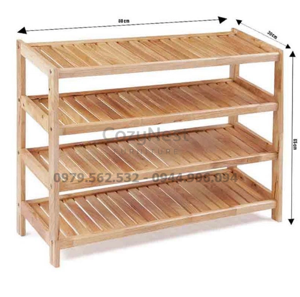 kệ để giày dép 4 tầng rộng 80cm gỗ tự nhiên