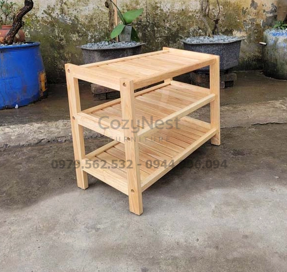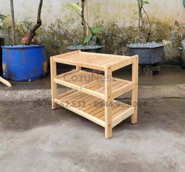 Kiểu dáng vuông vức, thanh gỗ đều và sáng, mang lại cảm giác gọn gàng và hiện đại. Kệ giày giúp không gian luôn ngăn nắp, sạch sẽ và có điểm nhấn tự nhiên. Đây là lựa chọn lý tưởng cho các căn hộ, nhà phố hoặc văn phòng nhỏ.