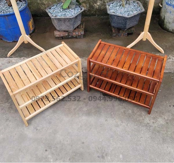 Sản phẩm được làm từ gỗ cao su tự nhiên, đã xử lý chống mối mọt và ẩm mốc. Mặt gỗ nhẵn mịn, bo tròn các góc cạnh để đảm bảo an toàn khi sử dụng. Kệ giày có hai màu để lựa chọn: màu gỗ tự nhiên ấm áp và màu nâu sang trọng. Dù ở màu nào, sản phẩm vẫn giữ được vẻ mộc mạc và dễ phối nội thất.