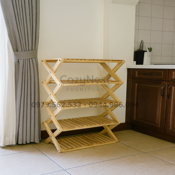 Tại CozyNest, kệ giày dép chữ X 5 tầng là một trong những mẫu được khách hàng tin chọn nhờ khả năng lưu trữ lớn và độ bền cao. Ngoài ra, CozyNest còn cung cấp các phiên bản 2, 3 và 4 tầng để đáp ứng đa dạng nhu cầu sử dụng.