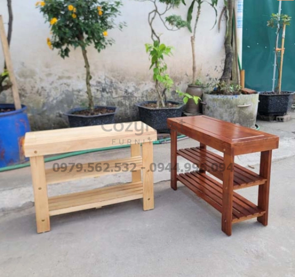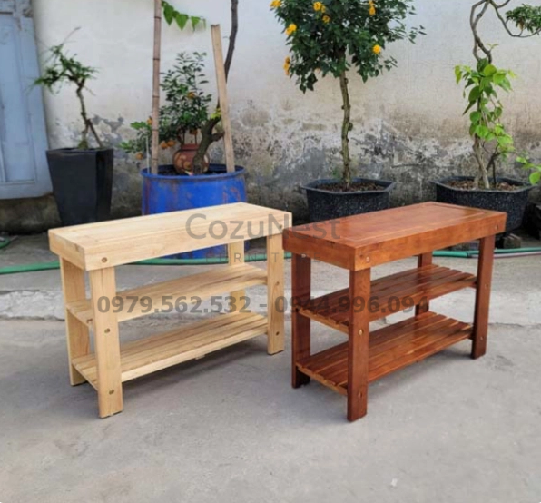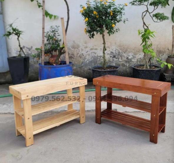 kệ giày ngồi màu nâu gỗ tự nhiên
