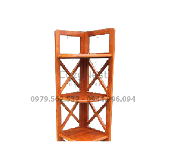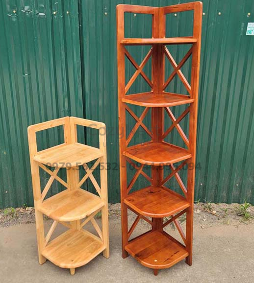 Kệ góc tường hồi X 5 tầng gỗ tự nhiên