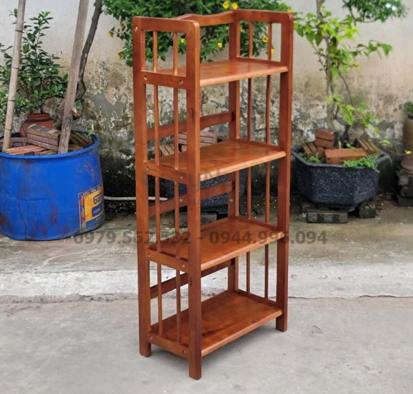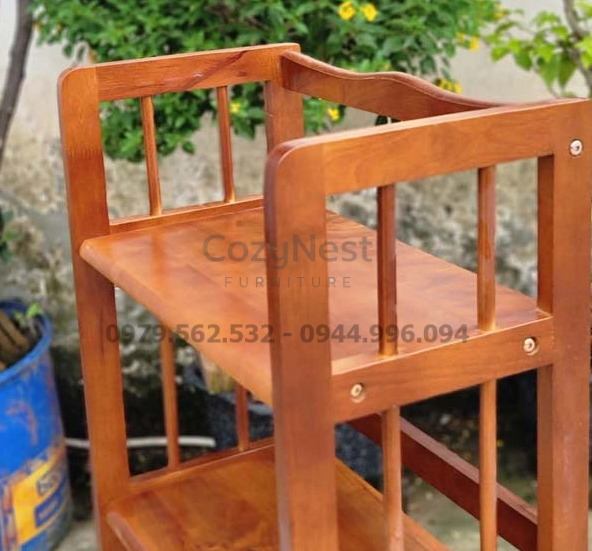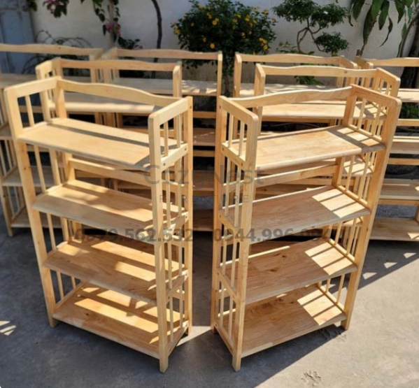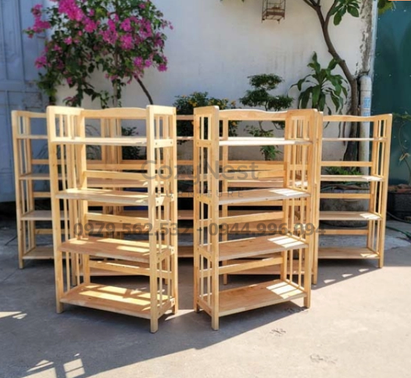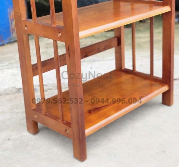 Kệ được gia công từ gỗ tự nhiên chất lượng cao, chống cong vênh và mối mọt tốt. Nhờ quy trình xử lý kỹ lưỡng, sản phẩm không chỉ bền mà còn giữ được màu sắc và vẻ đẹp mộc mạc theo thời gian.