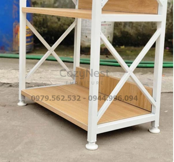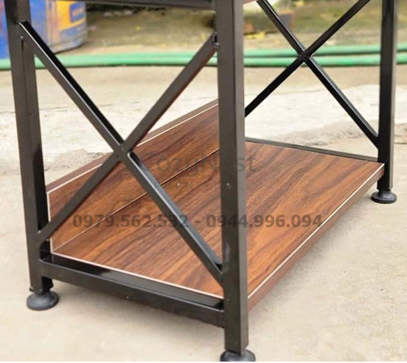 Sản phẩm được chế tác từ khung sắt sơn tĩnh điện chống gỉ, kết hợp mặt gỗ melamin chống ẩm, chống trầy xước hiệu quả. Cấu trúc chắc chắn giúp kệ chịu lực tốt, bề mặt phẳng mịn dễ lau chùi. Đây là lựa chọn bền đẹp, vừa đảm bảo tính thẩm mỹ vừa mang lại công năng cao khi sử dụng lâu dài.