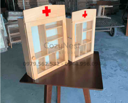 Tủ được chế tác từ gỗ thông tự nhiên đã qua xử lý chống cong vênh và mối mọt. Vân gỗ sáng, mịn và đều màu giúp tổng thể sản phẩm mang nét mộc mạc nhưng vẫn sang trọng. Gỗ thông còn có trọng lượng nhẹ, dễ lắp đặt và an toàn cho môi trường sống, đặc biệt phù hợp với không gian gia đình hoặc phòng khám nhỏ.
