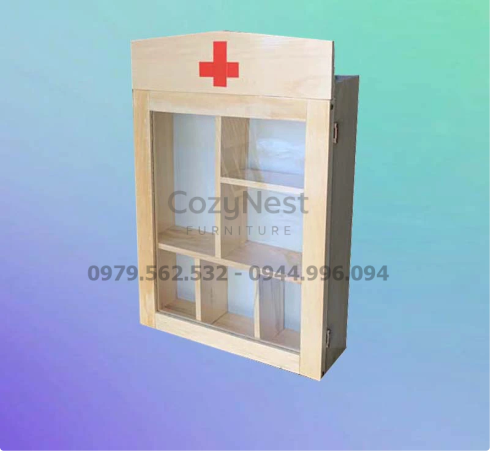 Bên trong tủ được chia thành các ngăn nhỏ hợp lý, giúp phân loại thuốc men, bông băng, dụng cụ y tế khoa học. Sản phẩm có thể treo tường hoặc đặt bàn tùy theo không gian sử dụng. Với chất liệu gỗ nhẹ, dễ vệ sinh, tủ thuốc mang đến sự tiện nghi và an tâm cho mỗi gia đình.